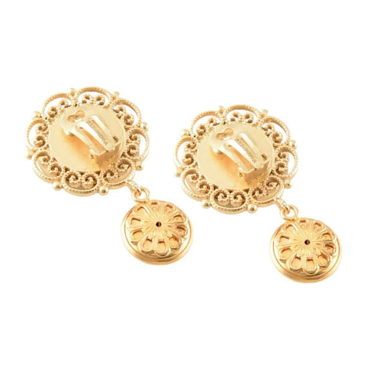 $1100 DOLCE & GABBANA Clip On Button Design Earrings Embossed Lion & Crown Made in Italy