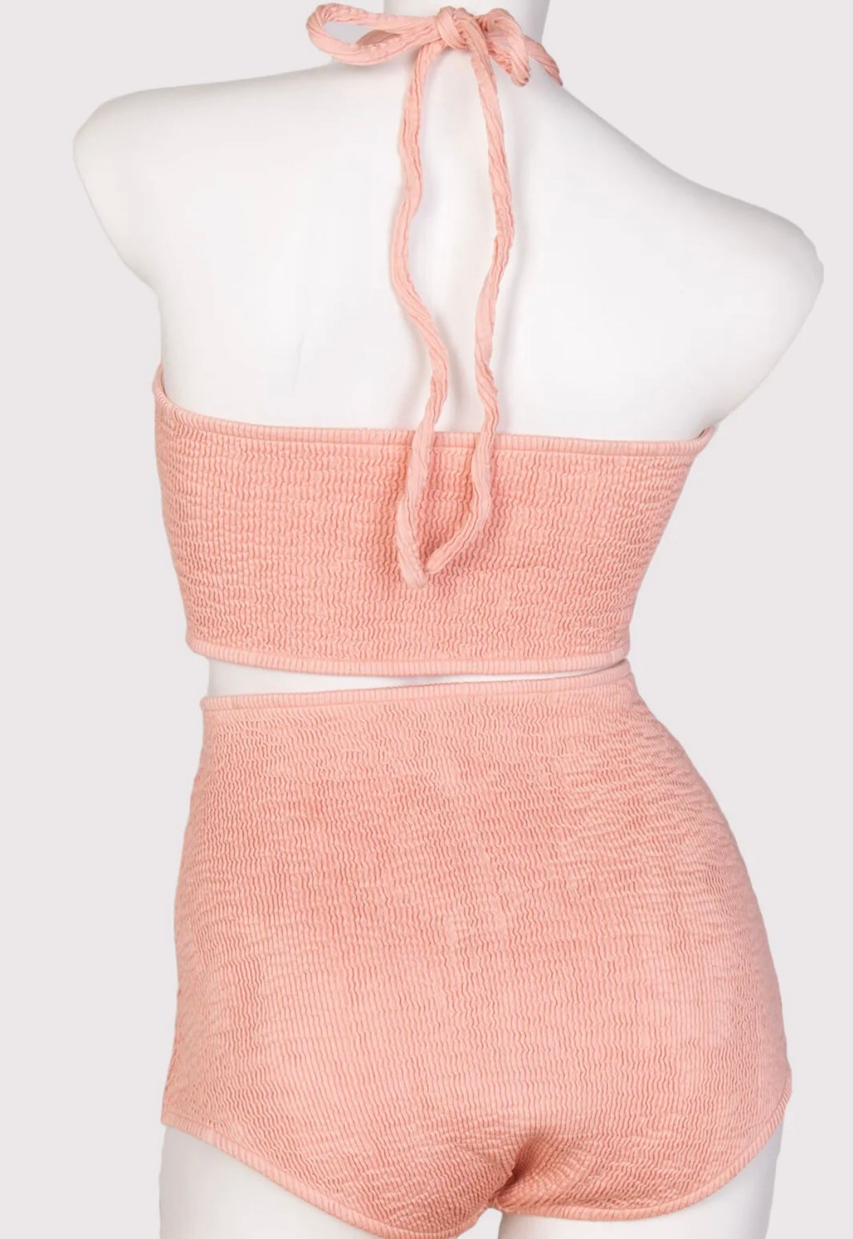 $490 BOTTEGA VENETA Pink Crinkle Bikini Set US8 IT44 L High-Waisted Made in Italy